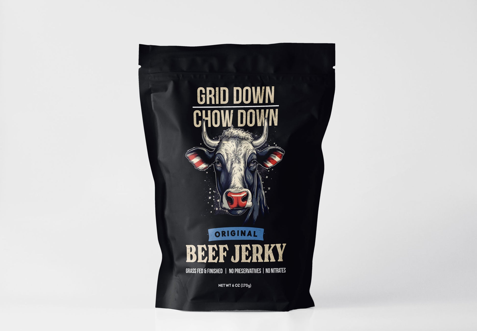 Each 6-ounce bag starts with a full pound of raw premium, grass-fed, grass-finished beef-raised the right way on open pastures and slow-dried the old-fashioned way.